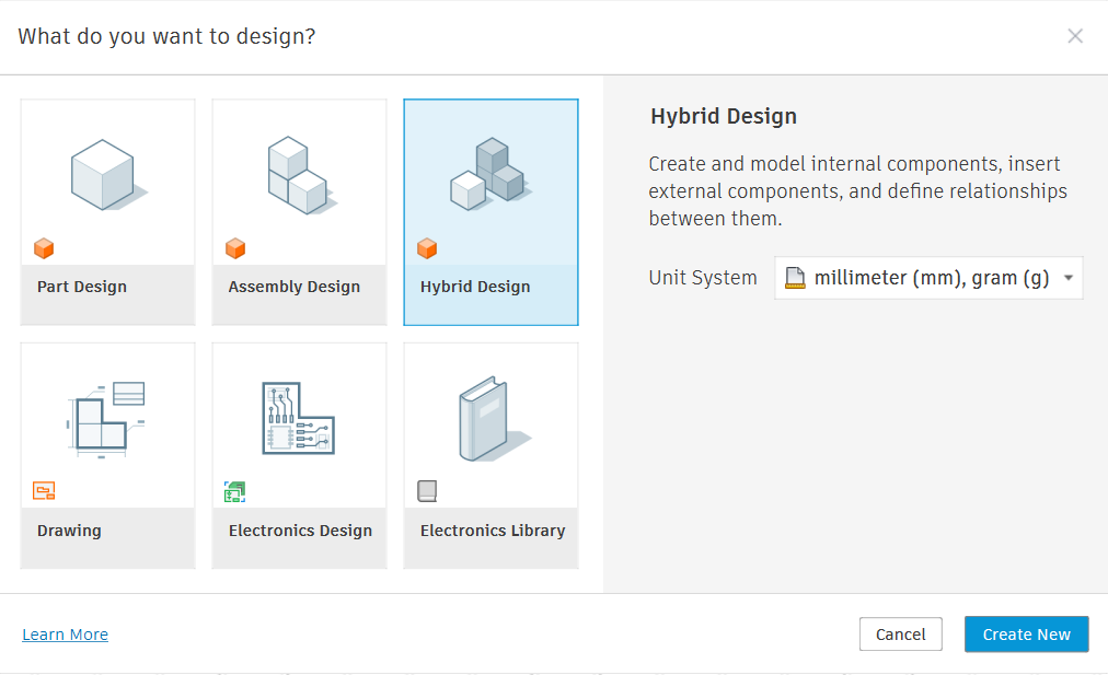 Fusion 360 releases new design templates in January 2026. For Spherene users, we kindly ask you to use the “Hybrid Design” template when creating a new Fusion project.